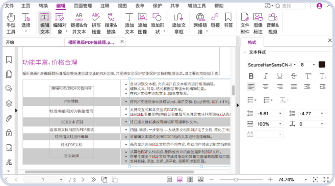 具有完全自主产权的PDF核心技术,提供文档的生成、转换、显示、编辑、搜索、打印、存储、