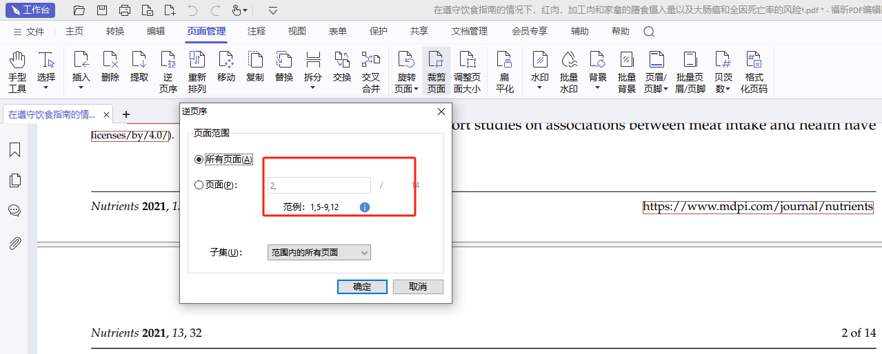点击工具栏上的【页面管理】,点击其中的【逆页序】图标,然后我们就可以进行后续操作啦。