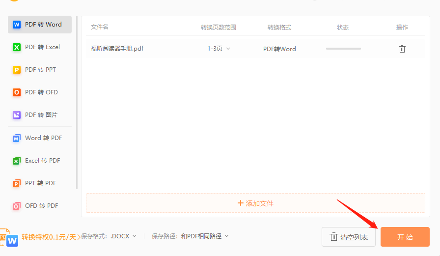 点击开始即可,5页内的文档都是支持免费转换的