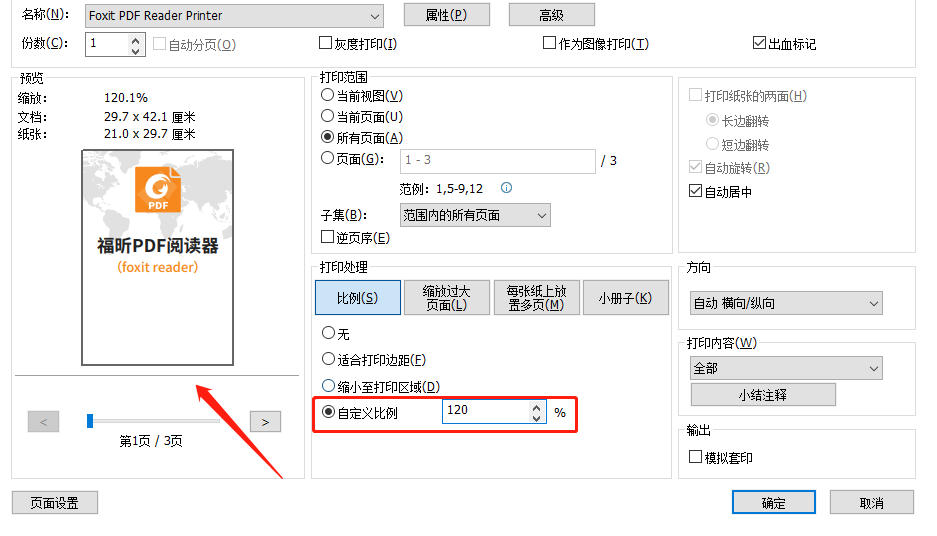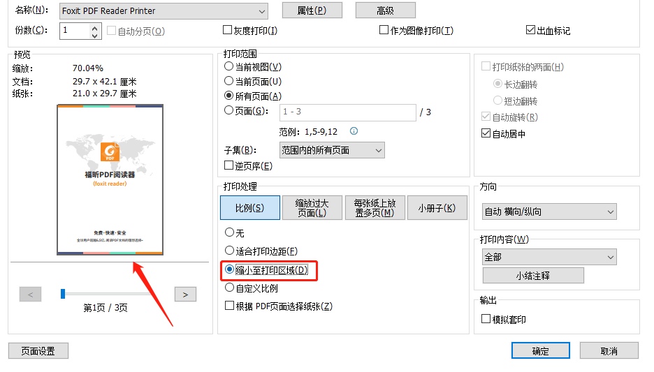 5:如果只需要修改部分,可以先将PDF文档进行缩放是,在页面范围中可以设置裁剪的页面,可以是全部页面、当前页面或者自定义裁剪页面。
