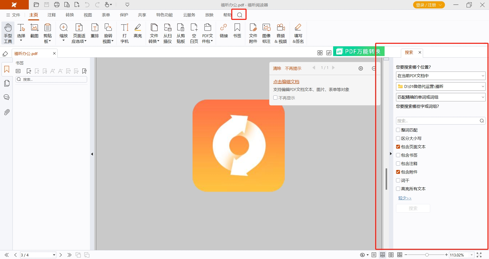 使用 PDF阅读器专业版怎么使用搜索&替换文字功能?