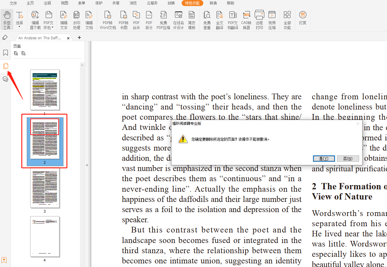 PDF阅读器如何删除PDF中的一页,推荐 阅读器专业版,是需要在左侧缩略图选中要删除的页面,键盘按下【DELETE】键,即可删除页面且不限制删除页数哦!