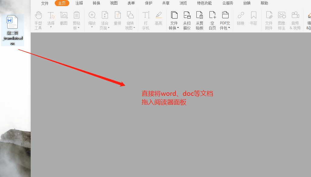 直接将word文档拖入 阅读器的面板,会自动转化为PDF格式,这里的过程就是利用虚拟打印机完成