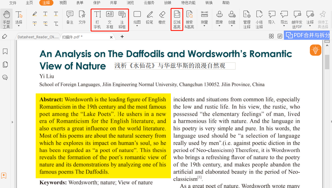 对于此类PDF,也可以使用区域高亮、打字机、文本框及注释框来进行批注。