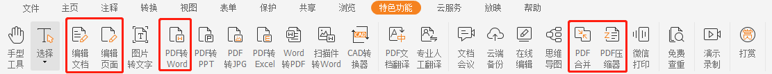 在特色功能栏,你还可以尝试使用其他PDF工具来编辑、压缩、远程打印或合并PDF文件。