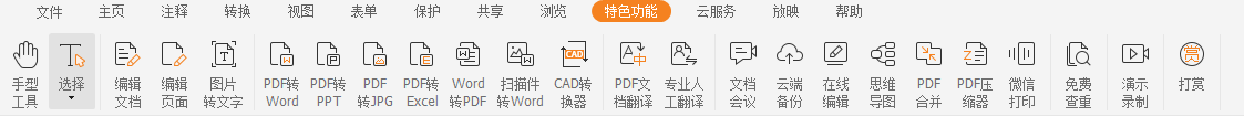 安装完成后,打开一份PDF文档,在工具栏找到【特色功能】,以下这几款免费又实用!