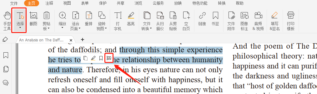1、使用【选择工具】,选中内容后点击翻译图标,即可进入划词翻译