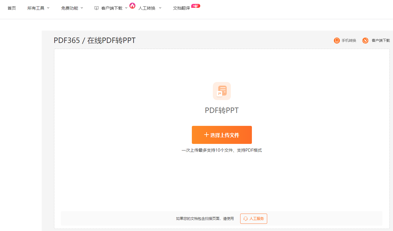 完成上一步后,会跳转到专门的PDF转PPT页面,在此页面上上传PDF,可以批量上传。转换成功后直接在页面上点击下载即可。