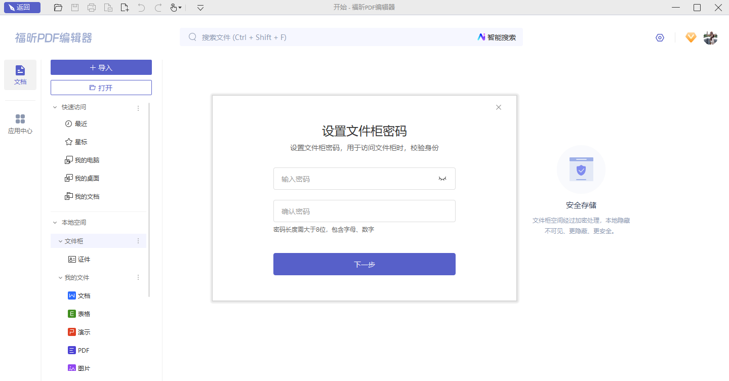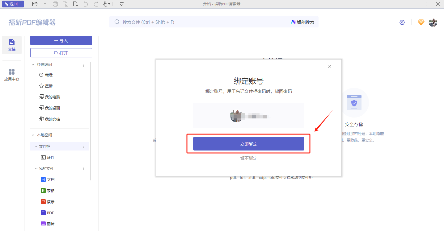 初次访问文件柜,需要设置一个文件柜密码并绑定账号