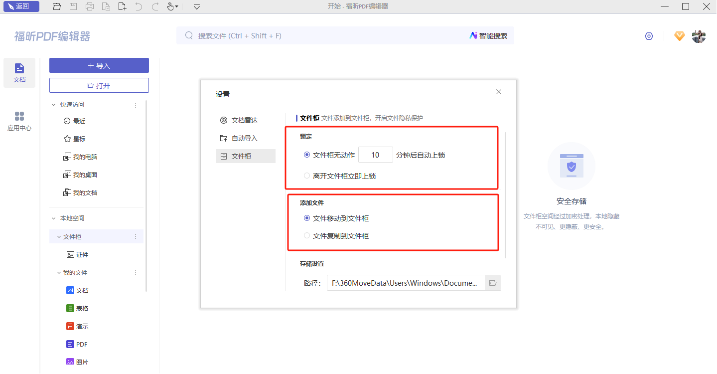 文件柜是什么?可以理解成文件的保险柜,为文件柜设密码保护,访问需输密码才可查看,一定时间无操作自动上锁,且经过特殊加密,被加密后的文件本地隐藏不可见。