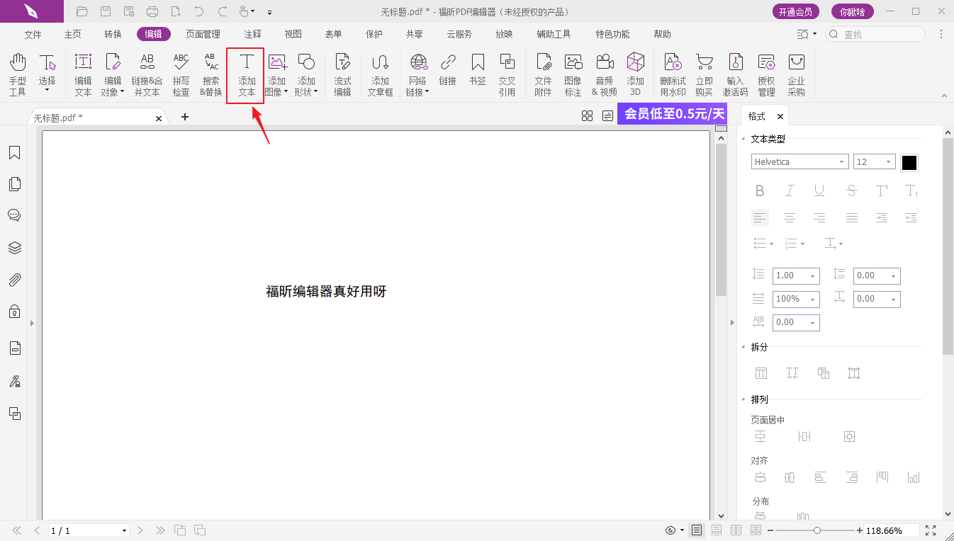步骤二:点击【编辑】-【添加文本】,添加你想写的文字。