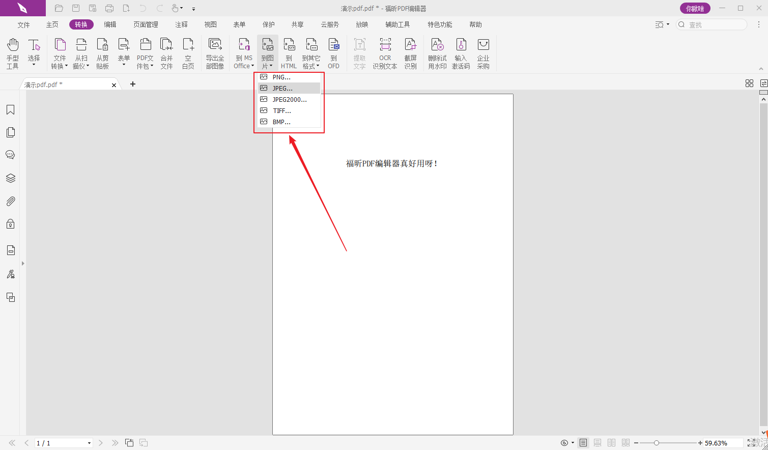 步骤二:点击【转换】-【到图片】选择需要转换的图片格式