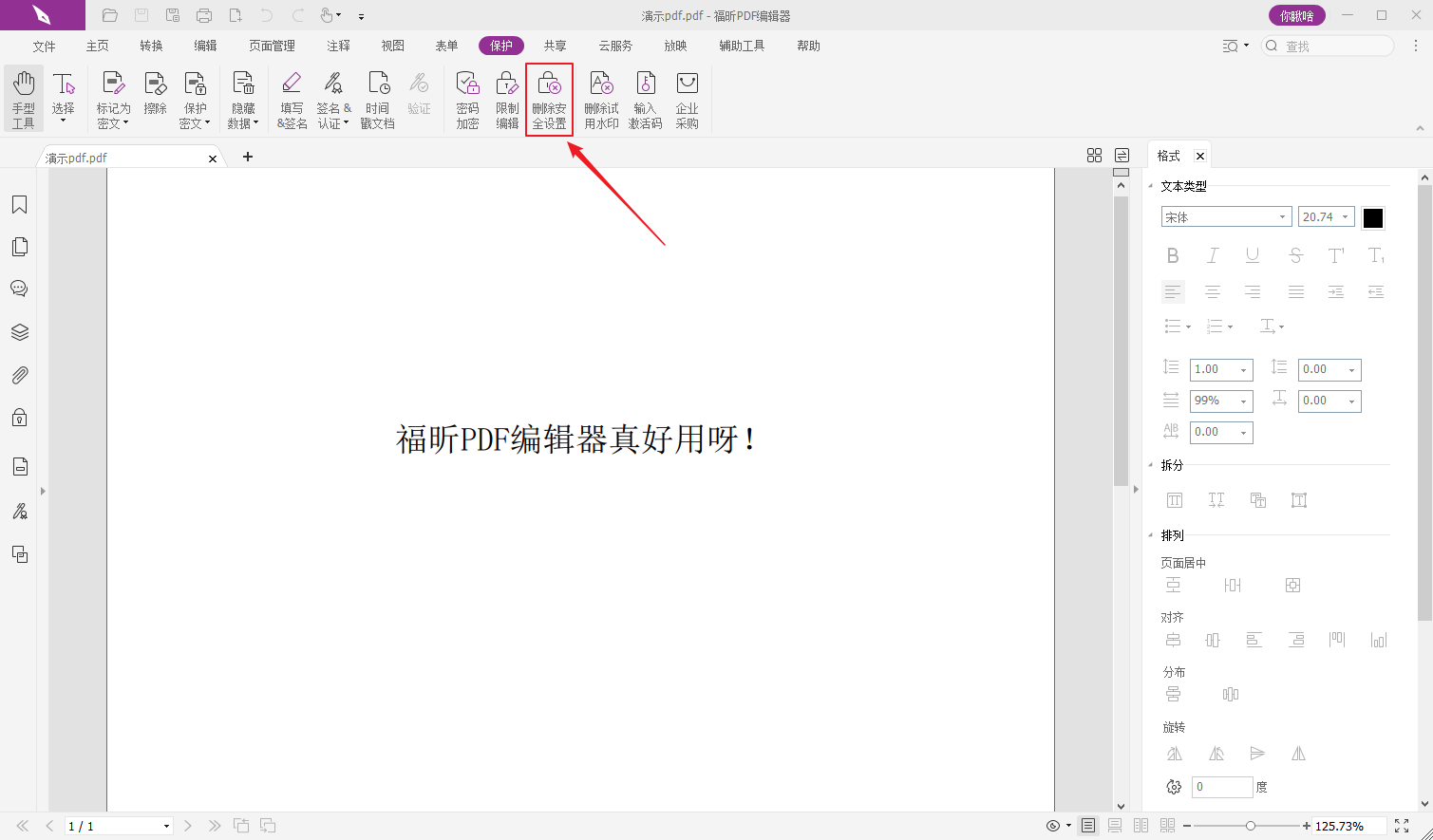 步骤二:点击【保护】-【删除安全设置】