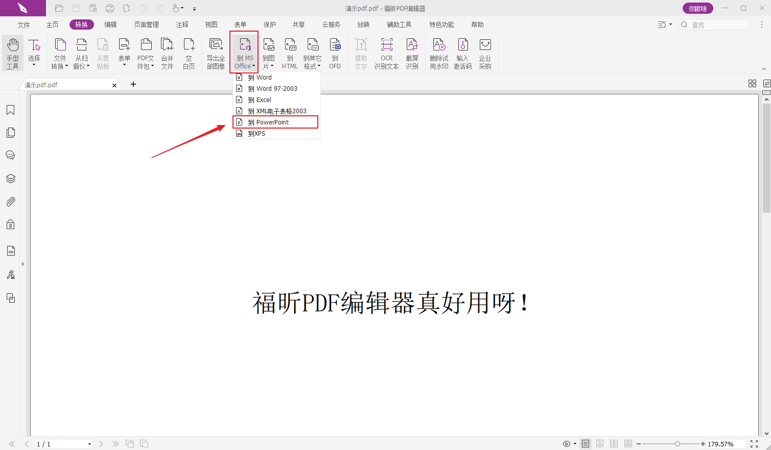 步骤二:点击【转换】-【到MS Office】-【到PowerPoint】
