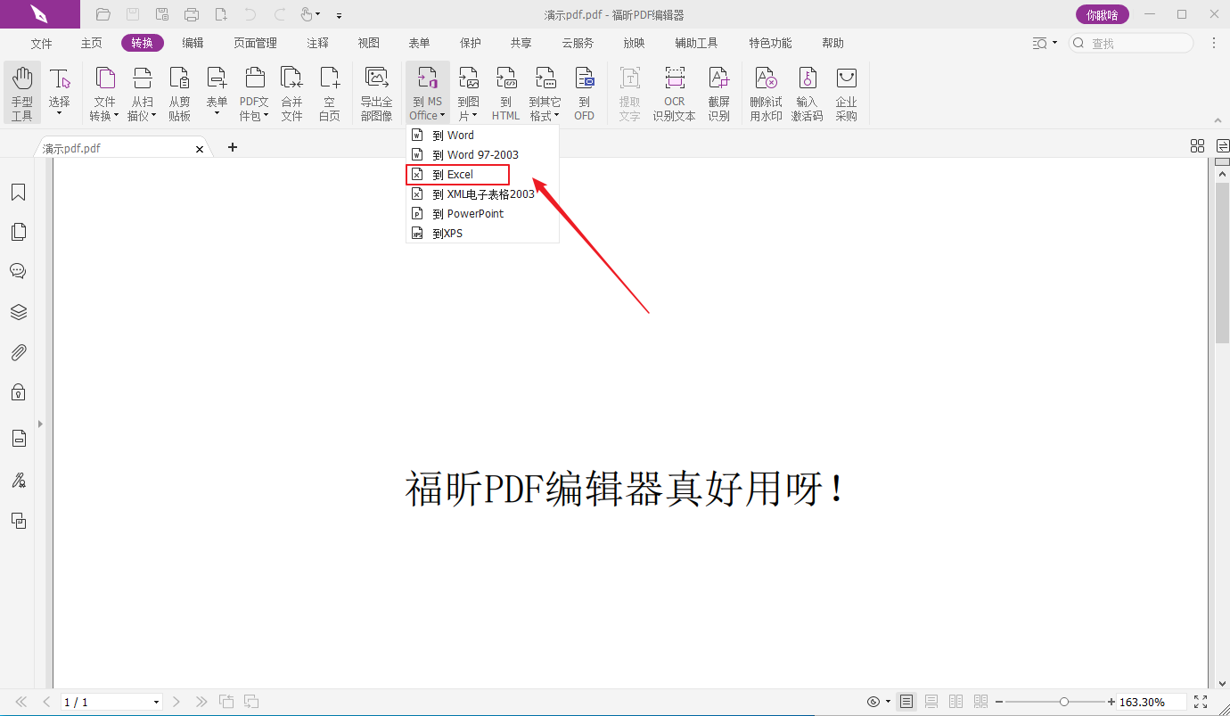 步骤二:点击【转换】-【到MS Office】-【到Excel】